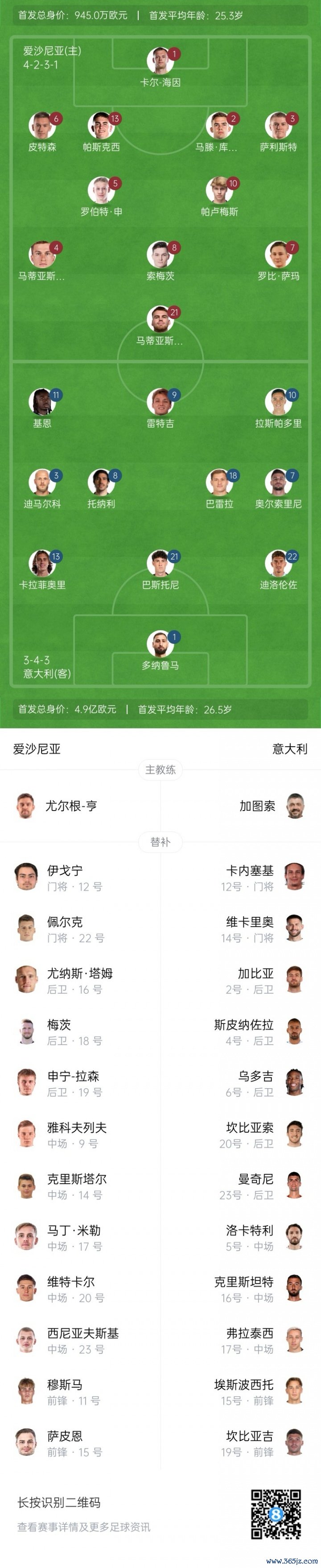 意大利3胜1负暂排小组第二,爱沙尼亚1胜4负暂排第四。