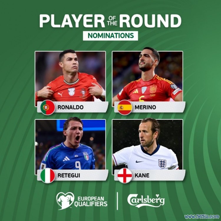 10月15日讯 欧足联公布了欧洲世初赛本轮最好球员候选名单,C罗、梅里诺、雷特吉、凯恩在列。