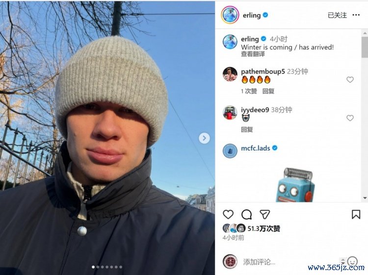 哈兰德社媒晒出多张像片,其中包括我方的冬季装束,配文:“冬天要来了/依然到了!”