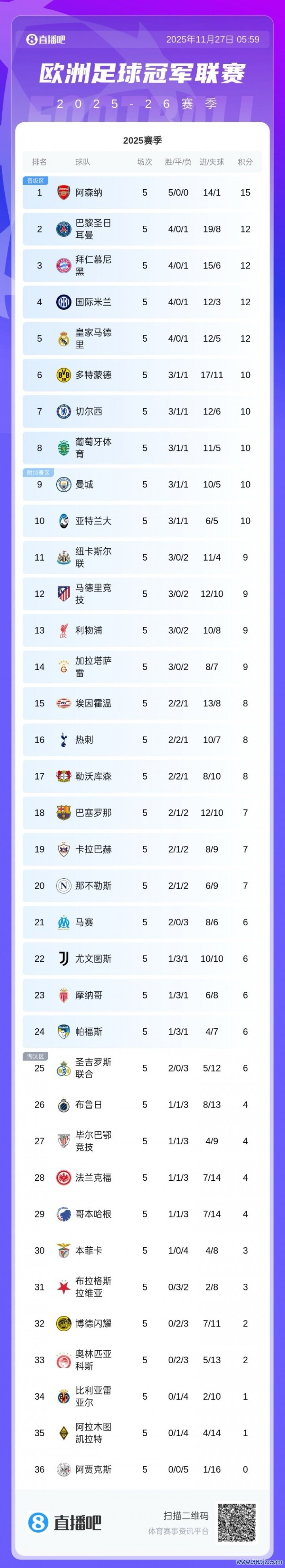 11月27日讯 欧冠联赛阶段第5轮焦点战,阿森纳3-1治服拜仁,全胜领跑积分榜。