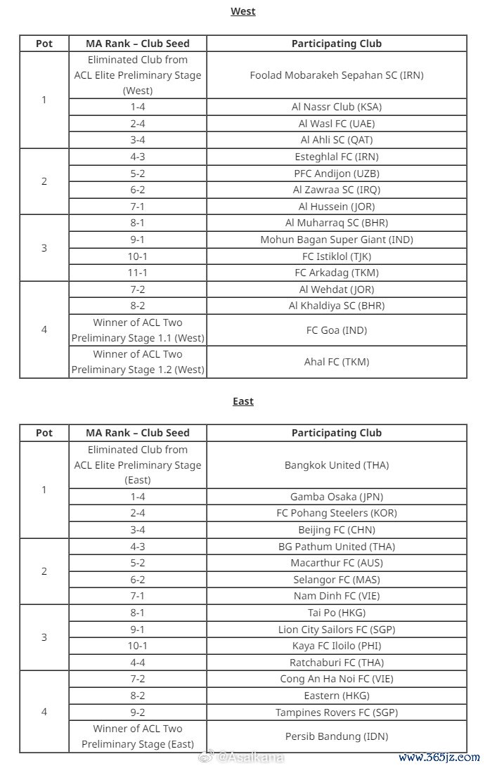 东西亚区仍将分开抽签,每个小组将会分裂有一支来自本区域1号、2号、3号、4号种子的球队,北京国安和曼谷联、大阪钢巴、浦项铁东谈主同为1号种子球队,因此他们将不会分在归并小组。同期,抽签时还将治服同协会侧宗旨原则,即来自归并协会的球队将不会分在归并小组。