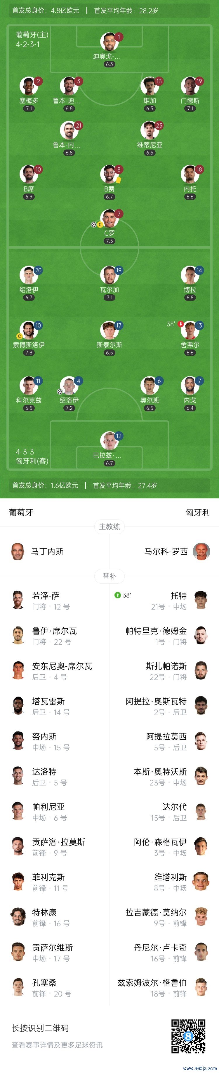 第45+3分钟,门德斯左路送出妙传,禁区内C罗跟进抢点包抄中计献技双响,个东说念主世初赛进球再次刷新为41球!葡萄牙2-1反超↓