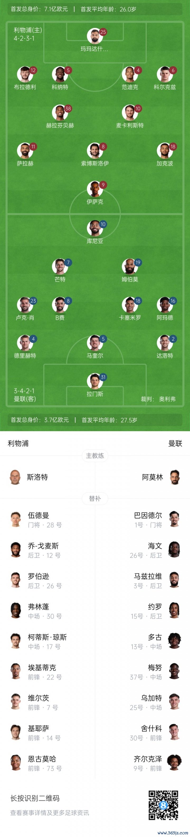 10月19日讯 利物浦vs曼联首发出炉,维尔茨又一次坐在了替补席上,他仍是接续2场英超替补。