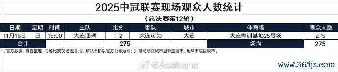 2025中冠联赛现场不雅世东谈主数统计(总决赛第12轮)