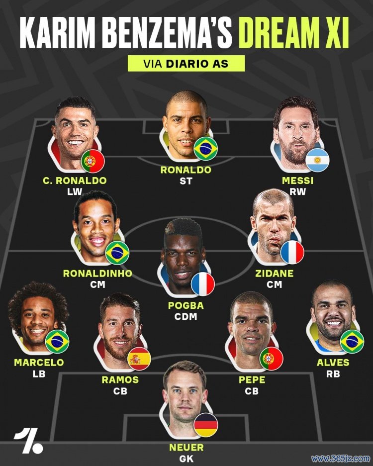 11月20日讯 日前在继承《阿斯报》采访时,前法国国脚、前皇马时尚、2022年金球先生本泽马评比出我方心目中的足坛历史虚幻11东谈主阵。其中,梅西、C罗、大罗三东谈主领衔锋线,小罗、皆达内、博格巴镇守中场。