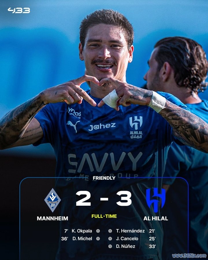08月15日讯 利雅得眉月友谊赛对阵德丙球队曼海姆,前利物浦时尚努涅斯本场比赛首发出战半场打进1球。