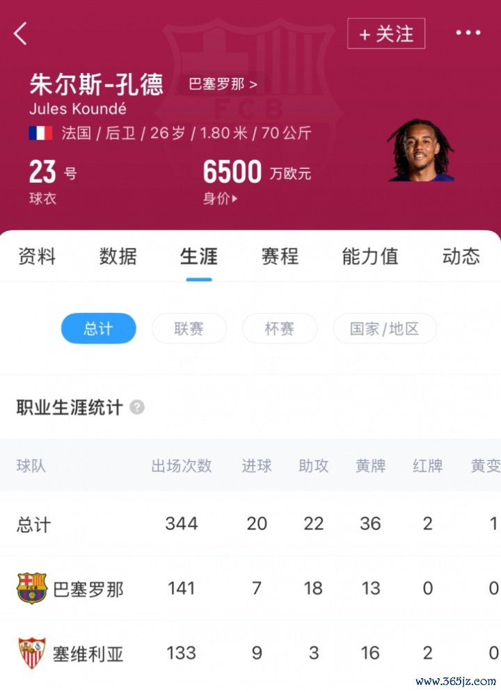 孔德2022年加盟巴萨,效率以来出战141场比赛7球18助。