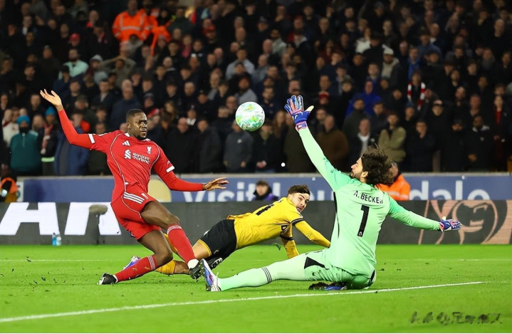 比赛伊始,作为卫冕冠军的利物浦便展现出掌控局面的欲望。门将阿利松在上半场的大部分时间里,更多是在本方半场悠闲地倒脚,而非忙于化解狼队的险情。