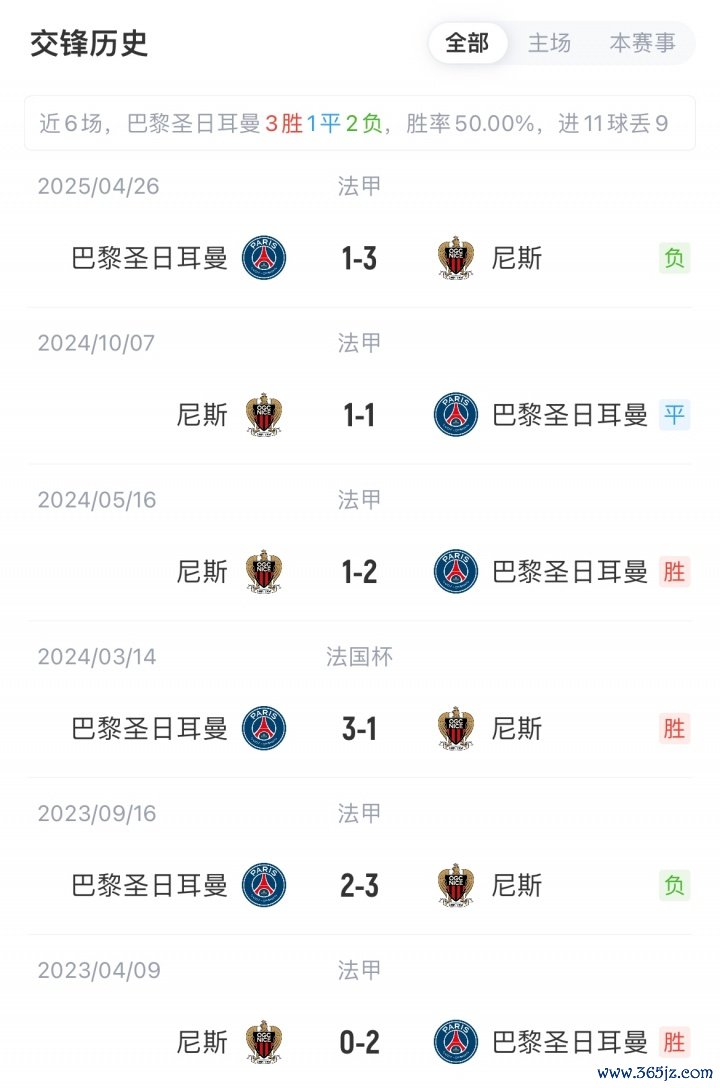 巴黎联赛6胜3平1负积21分领跑法甲积分榜,各项赛事知晓7场不败;尼斯联赛5胜2平3负积17分暂位法甲第8,近5轮不败。巴黎对阵尼斯已知晓2场不堪(1平1负)。