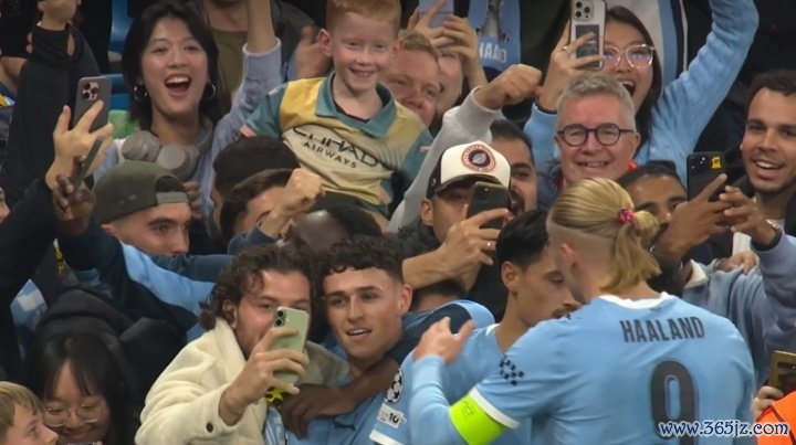 11月06日讯 欧冠联赛阶段第4轮曼城vs多特第22分钟,福登进球后跑到角旗区庆祝,有球迷搂着他自拍了一张,福登还看镜头笑的十分勾搭。