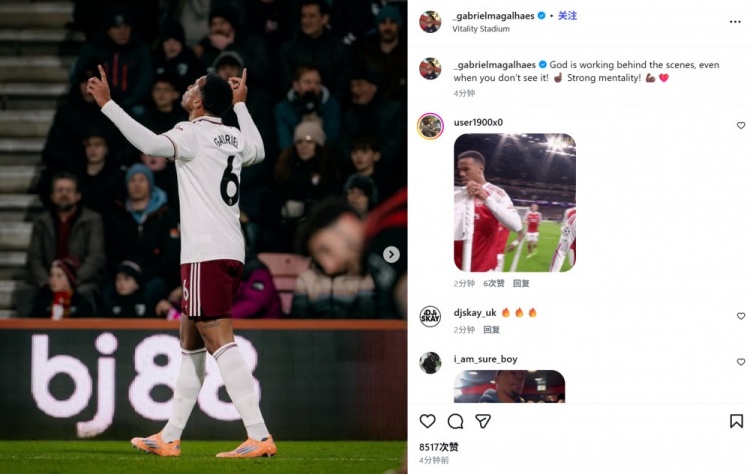 他也在赛后通过社媒晒出我方进球后的庆祝照并配文:“即使你并未目击多特蒙德,天主也在幕后沉默责任!☝🏾 (咱们有着)庞杂的心态!💪🏾❤️”