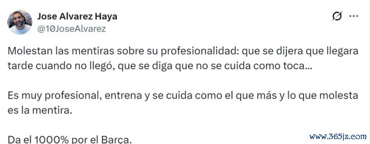 Jose Alvarez Haya社媒写说念:“漫骂亚马尔事业气派的流言令东说念主恼火——他明明莫得迟到,却被传迟到,还被说疏于自我处分。”