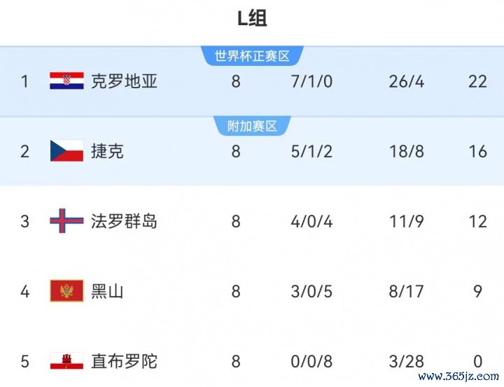 L组:克罗地亚头名纵贯正赛,捷克第2将参加附加赛