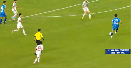 真的,第24分钟,长沙队63号姜承坤在禁区外一脚罗纳尔迪尼奥似的传球,眼睛看向一侧,球却传向另一侧,骗过第一次首发的46号肖京辉,14号李健辉补位不足,被后排很远距离插上的9号黄毅告成一脚打进。长沙队1-0跨越。