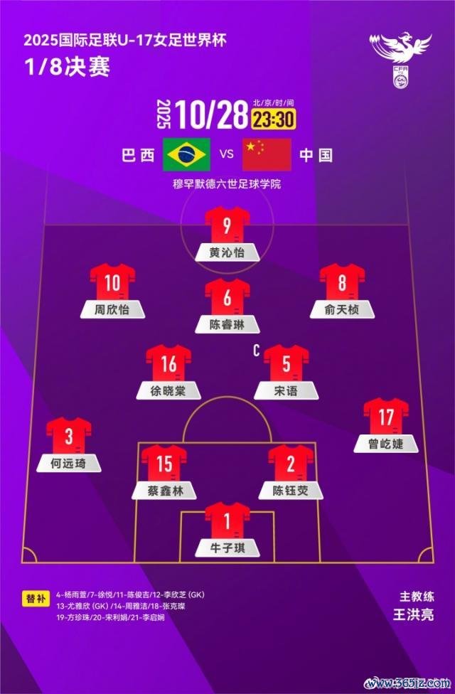 北京技艺10月28日23:30,U17女足宇宙杯1/8决赛,中国U17女足迎战巴西U17女足。赛前两边公布首发声势。