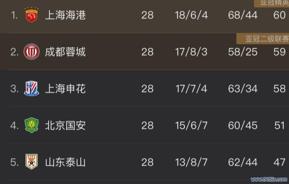 在当今的中超积分榜上,上海海港暂时以60分领跑,成齐蓉城59分紧随后来,上海申花58分。