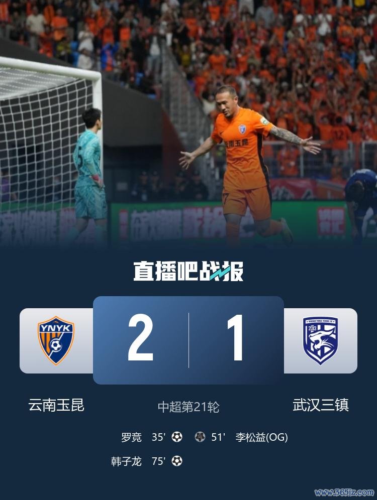 直播吧8月15日讯 北京时8月15日20:00,中超联赛第21轮云南玉昆迎战武汉三镇的比赛在玉溪高原体育中心进行,上半场叶楚贵门前失良机,邓涵文抽射造险,罗竞远射全国波首开纪录,半场截至,云南玉昆1-0武汉三镇。下半场帕拉西奥斯造李松益乌龙球,恩里克失佛门,韩子龙替补立功,任航送点恩里克失点,最终云南玉昆2-1武汉三镇近三轮首胜积29分暂升第8,武汉七轮不堪积21分仍居第11。