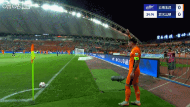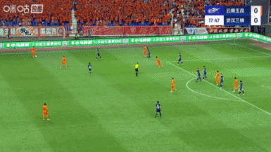 上半场补时5分钟,第46分钟,云南中场定位球契机,布尔克径直吊门打高了。↓